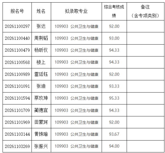 清华大学2026年万科公共卫生与健康学院招收公开招考博士研究生拟录取名单公示